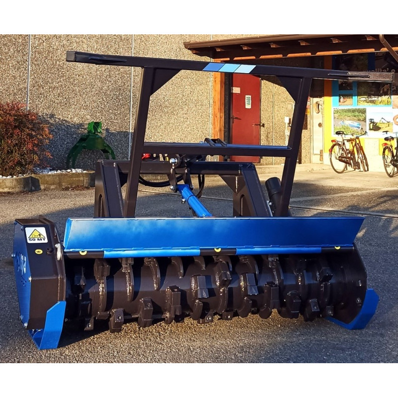 Broyeur forestier à marteaux fixe adapté aux tracteurs de gabarit moyen avec prise de force basse (40-43 cm du sol) idéal pour couper l’herbe, les branches, le bois et la végétation dense jusqu’à 15 cm de diamètre.