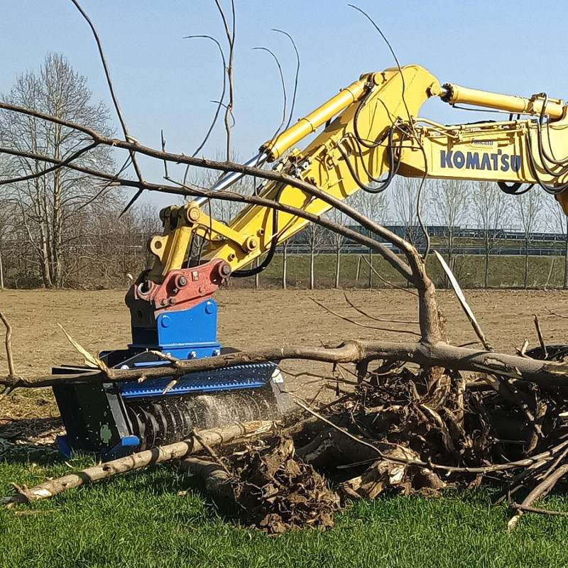 Tête de broyage idéale pour les arbres, arbustes, branches. Une puissance sans équivalent et un diamètre de coupe jusqu'à 40cm.