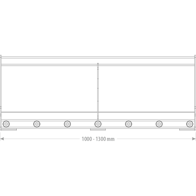 Fourche pique botte avec tablier disponible en 1000, 1200 et 1300mm et 6 ou 7 dents interchangeables.