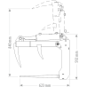 | Modèle | Poids (kg) | largeur tablier (mm) | hauteur (mm) | longueur pointes (mm) | Nb dents | capacité (m3) |