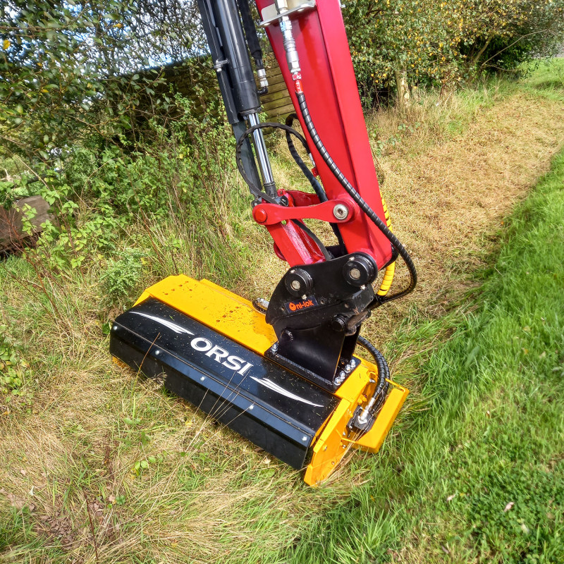 Les épareuses ORSI de la série INDUSTRIAL sont compatibles avec des mini pelles de 2.5 à 7T, tractopelles et chargeuses/télescopiques.