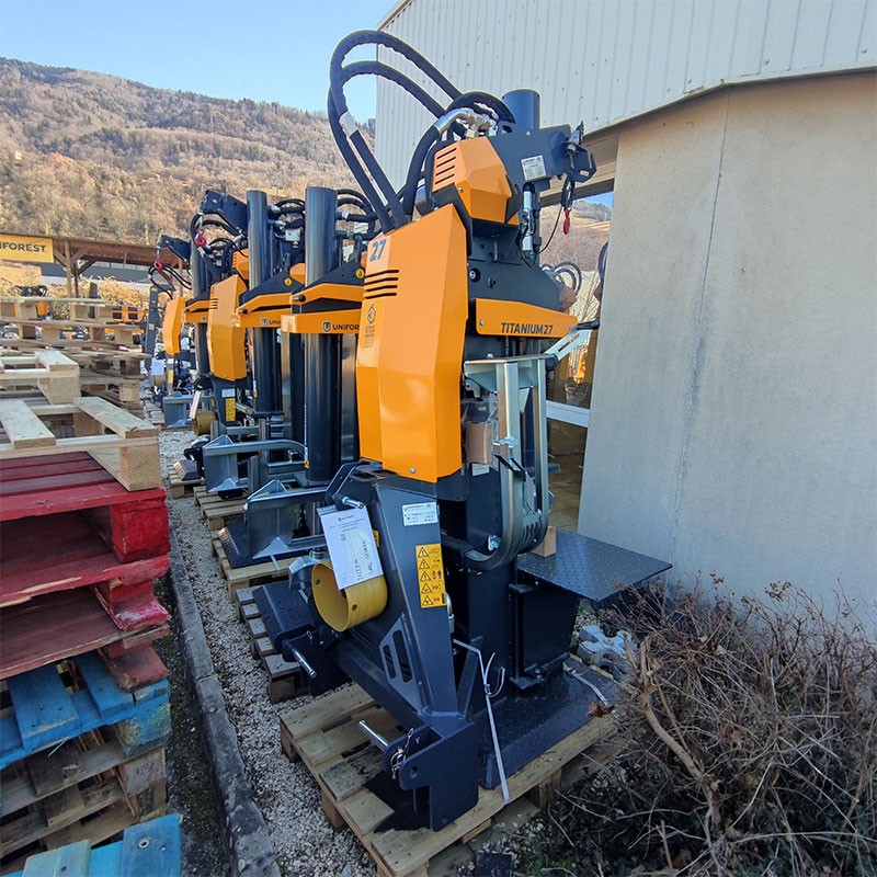 Les fendeurs à bois Titanium 27 Uniforest bénéficient d'une conception robuste. Chaque modèle est équipé d'une pompe en fonte assurant un fonctionnement silencieux et une durée de vie rallongée. Les fendeuses à bois Uniforest sont, par ailleurs, toutes équipées de valve Autospeed permettant une régulation automatique de vitesse de fendage et d'un réservoir à double fond particulièrement efficace pour éviter les fuites d'huiles. Par ailleurs ce modèle de fendeuse de bois possède un arrêt automatique du coin de fendage empêchant que la table ou la hache subissent des dommages. Pour finir, on notera que la mise en position de travail de la bûche à fendre, est simplifiée grâce à un distributeur spécialement conçu pour cela.