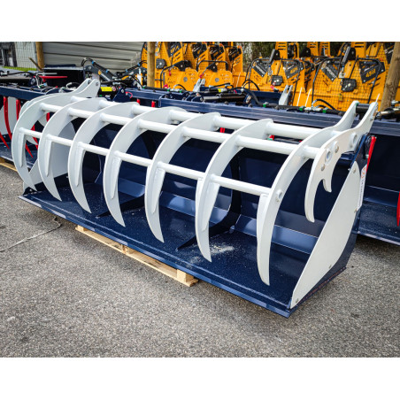 Godet conçu pour un usage polyvalent : manutention d'ensilage, de paille, de fumier, de bois, de pierre. D'autres usages sont possibles.