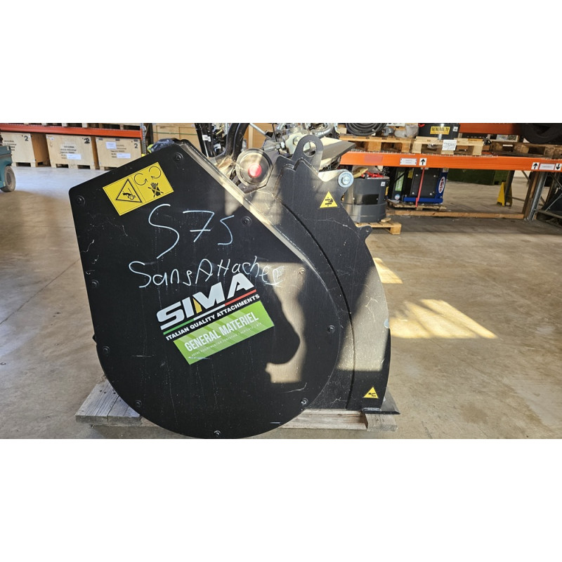 Equipement à l’honneur, un godet malaxeur SIMA S75 750 Litres, attache MANITOU ou MERLO, accumulateur et ensembles des équipements de série (goulotte, électrovanne, ouverture hydraulique de la trappe de vidange...)